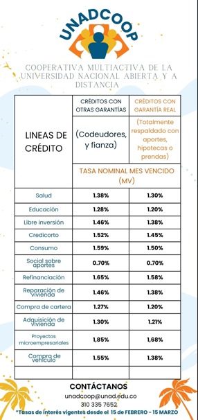 Como parte de nuestra comunidad UNADISTA, tienes la posibilidad de afiliarte a nuestra Cooperativa. Contáctanos y con gusto te ayudaremos con el proceso de vinculación.